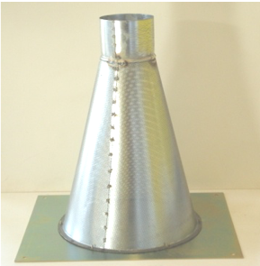 - TEYFUN-Belüftungskegel, perforiert, Lochung 1,5 mm Ø, 600 mm hoch, Rohranschluss passend für KG-Rohr DN 150, mit Bodenplatte 500 x 500 mm, verzinkt