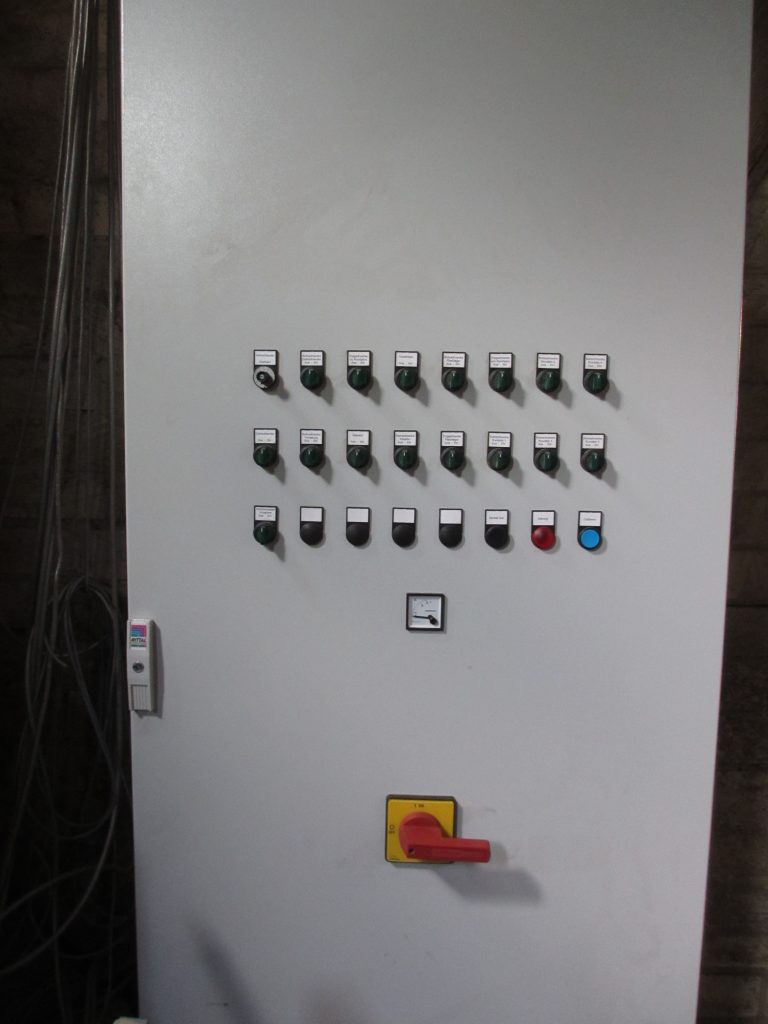 Ebenso erhalten Sie von uns anlagenspezifisch aufgebaute Schaltschränke mit allen notwendigen und gewünschten automatischen Komponenten, SPS-Schaltungen, Tastenbedienfeld und Schaubildern mit visualisierten Verfahrensabläufen.