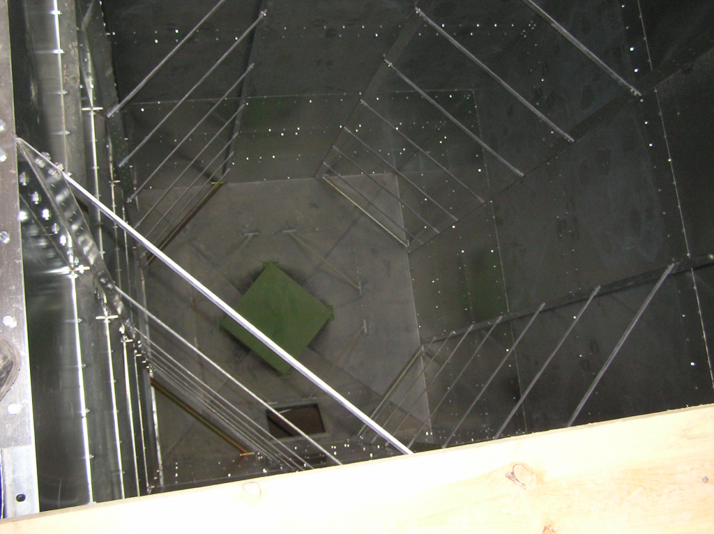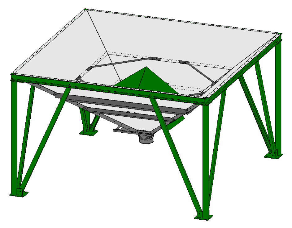 Entsprechend verhält es sich mit den Trichterunterbauten (verzinkte Trichterbleche, 40° Neigung / lackierte Unterkonstruktion / Auslauf mit Schieber), die für das LS III-System zur Verfügung stehen und in den Grundmaßen 2,10 x 2,10 m bis 3,10 x 3,10 m lieferbar sind.