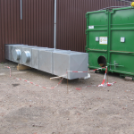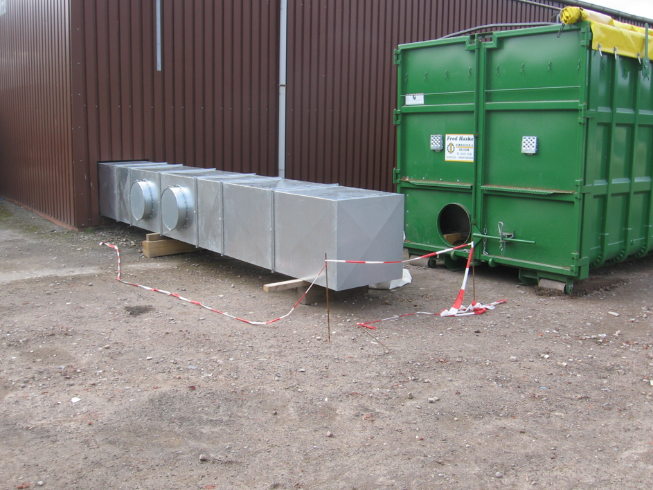 Rechnerisch wäre bei einer Luftrate von 800 m³/h eine Luftmenge von 24.000 m³/h erforderlich, wofür ein Gebläse mit ca. 11 kW vorzusehen wäre – allerdings nur dann, wenn auch eine entsprechend hohe Wärmemenge zur Verfügung steht.