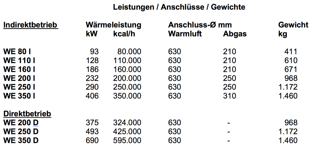 Bei bauseits beigestellten Brennern muss in jedem Fall die Anpassung der Brenner an unsere Warmlufterzeuger sowie das erforderliche Zubehör (Flansch, Flammrohrverlängerung, Installation) mit dem Werk geklärt werden.